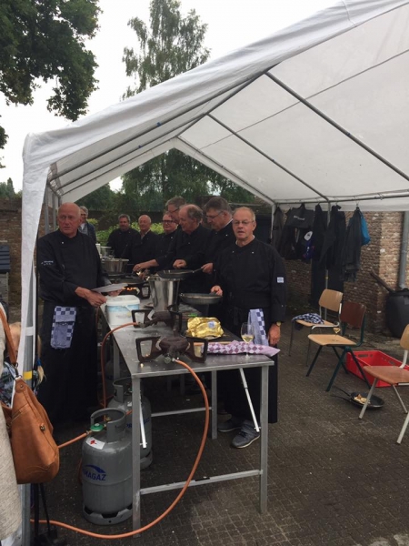 Er werden heerlijke pannenkoeken gebakken door de heren.